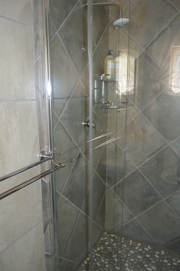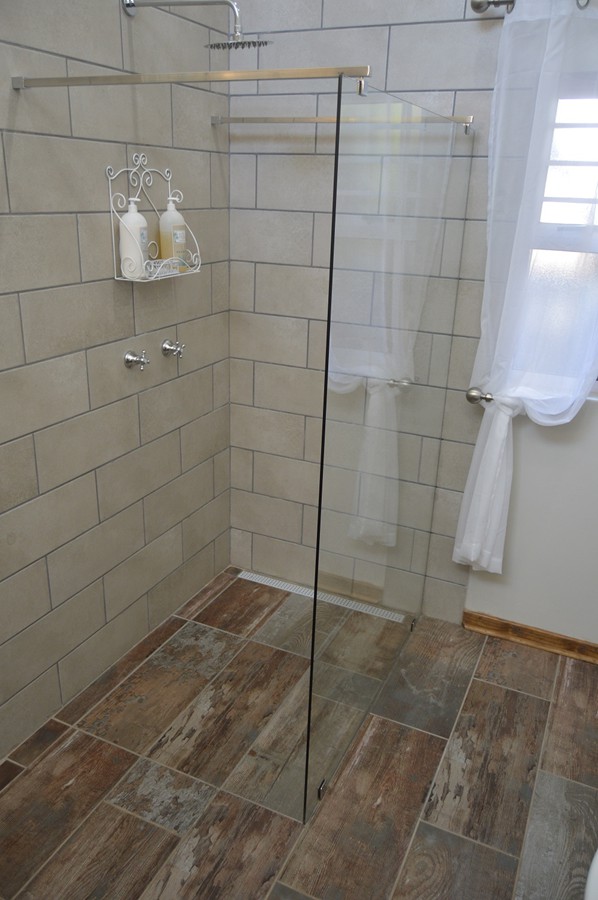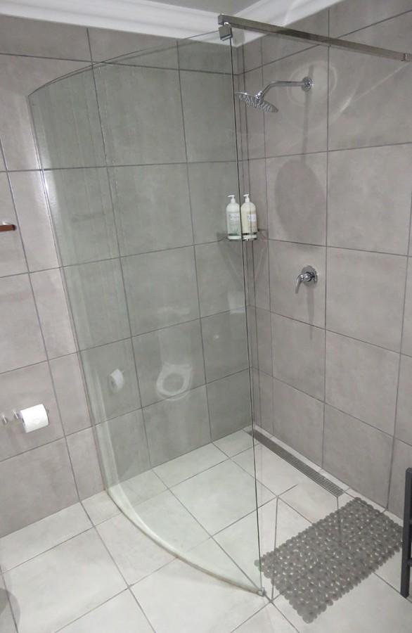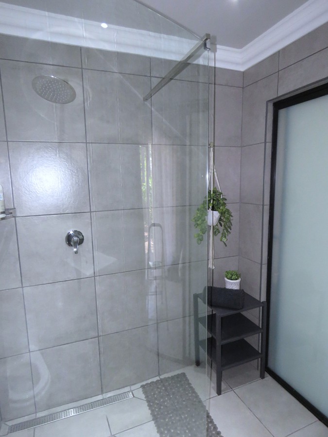- Full bathroom with shower, basin, toilet and bathtub