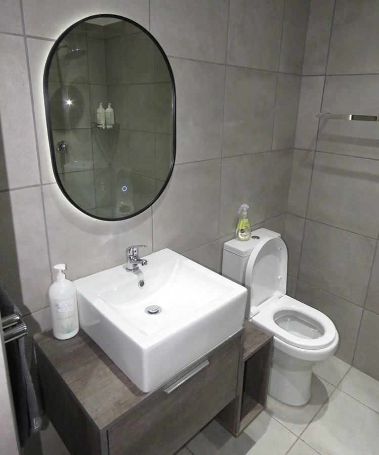 - Double room, en-suite shower, basin, toilet + small open plan living area with a single sleeper couch and an extra roll out mattress on request