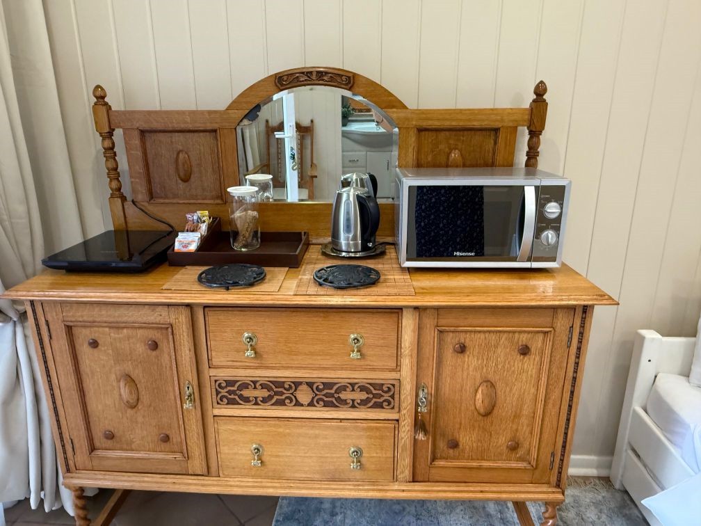 - Mini kitchen with microwave oven, kettle, fridge