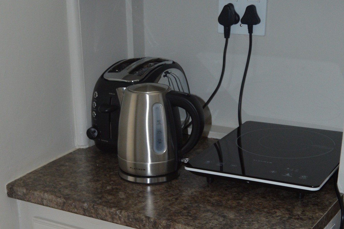 - Mini kitchen with microwave oven, kettle, fridge, washing machine